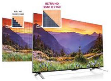 Ultra-high-definition television (also known as Super Hi-Vision, Ultra HD television, UltraHD, UHDTV, or UHD) includes 4K UHD (2160p).To fully understand 4K TV, you must first understand current HDTV, which offers 1,920 pixels the tiny dots that make up the picture across the width of the screen. The more pixels you have on a screen, the sharper the image. Now, imagine a TV that doubles the number of pixels across, to 3,840 pixels which is approximately four thousand pixels, or "4K." Vertical scanning lines are double as well, from 1080p to 2160p. What this means is you now have double the number of pixels to display an image so the picture you see is roughly twice as good. Another advantage is, the viewing distance can be closer without seeing all of those little square pixels. This means you can move closer which gives the effect of a much larger viewing area. Of course those extra pixels will also give you a great picture at longer distances as well.4K video capture of major motion pictures is very quickly becoming the industry standard in Hollywood. This high-quality digital video file must be down converted to 1080p for high-definition Blu-ray, whereas the original image can actually be displayed at its full native resolution on a 4K display, exactly as the filmmakers intended it to be seen!